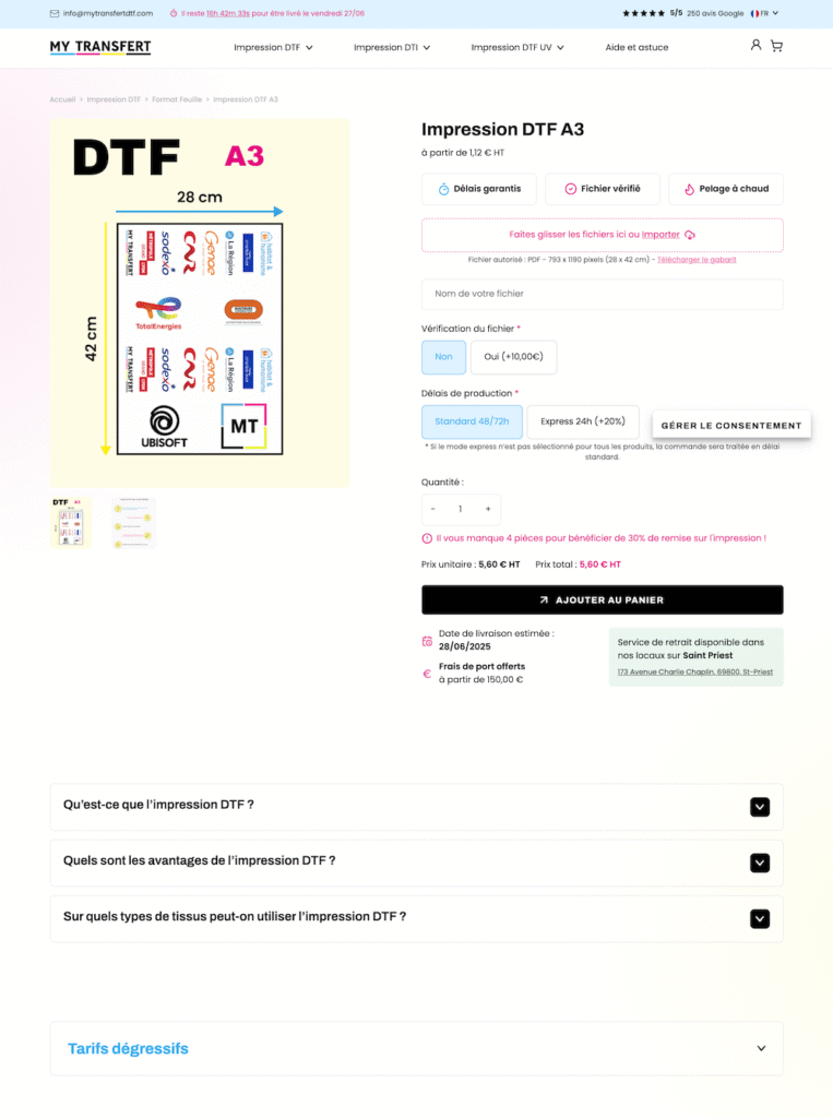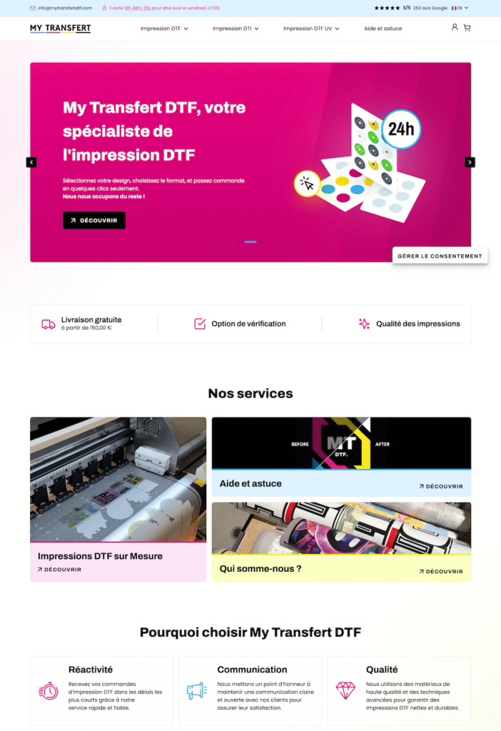 Le site est développé avec le CMS Wordpress avec Woocommerce pour la partie e-commerce. Toute l'intégration du thème a été développé directement en CSS (webpack) pour une meilleure optimisation des performances et fiabilité.