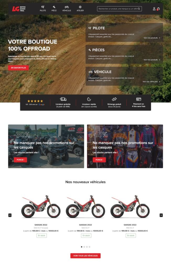 Le site est développé avec le CMS Wordpress avec Woocommerce intégré avec Webpack pour optimiser le chargement du site.